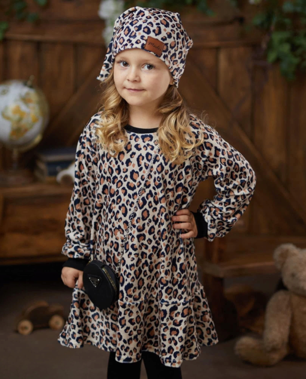 Oferujemy uroczą i stylową sukienkę dziewczęcą od polskiego producenta GAJA. Model Madżi to hit sezonu – mięciutki, welurowy materiał w modny print panterki, który zachwyci każdą małą elegantkę! Idealna na co dzień, do przedszkola, szkoły, a także na specjalne okazje.