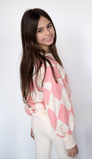 Bluza Dziewczęca Oversize w Różowe Romby „Preppy Style” Kiz by Kids