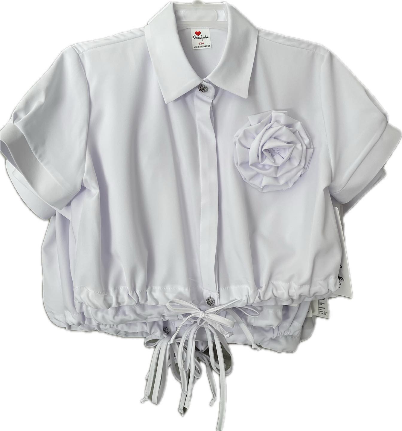 BLUZKA BIAŁA KOSZULA KLAUDYNKA WIZYTOWA Z RÓŻĄ ROZM OD 134-164 CM