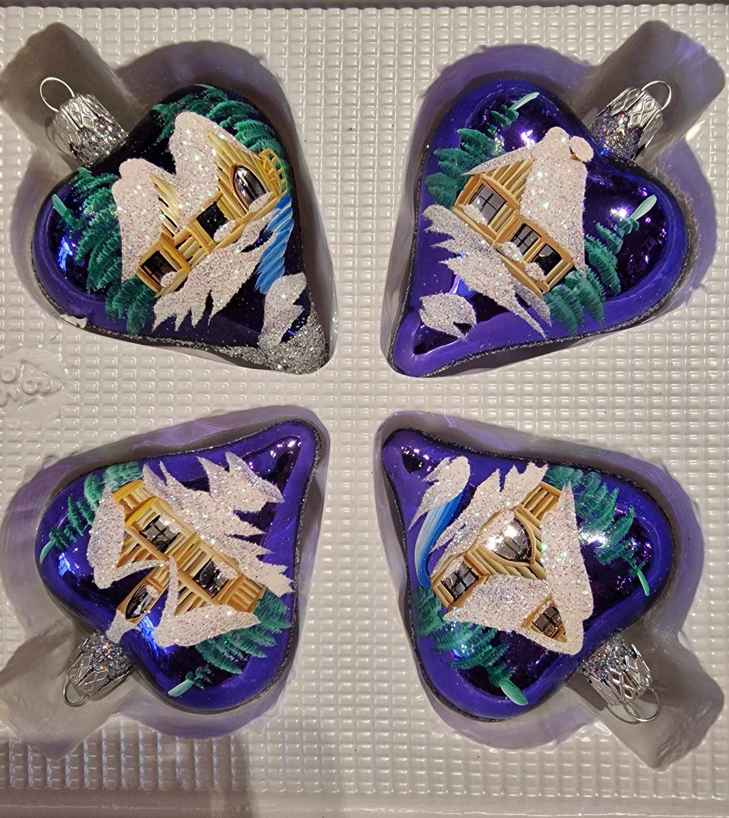 BOMBKI SZKLANE SERCA 4 SZT. OPAKOWANIE DOMKI