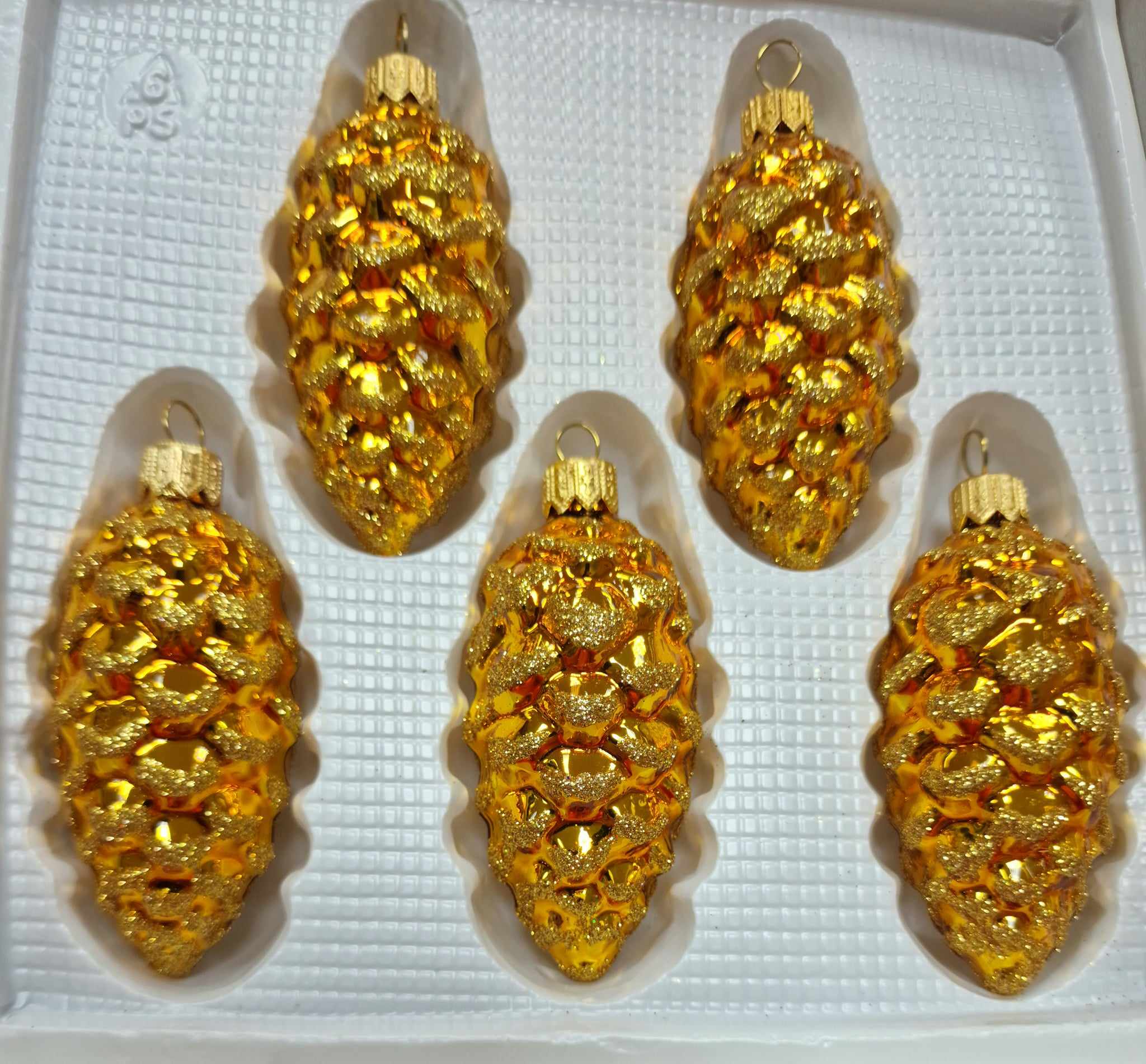 BOMBKI SZKLANE SZYSZKI- DŁ. OK 8 CM; PAKOWANE PO 5 SZT