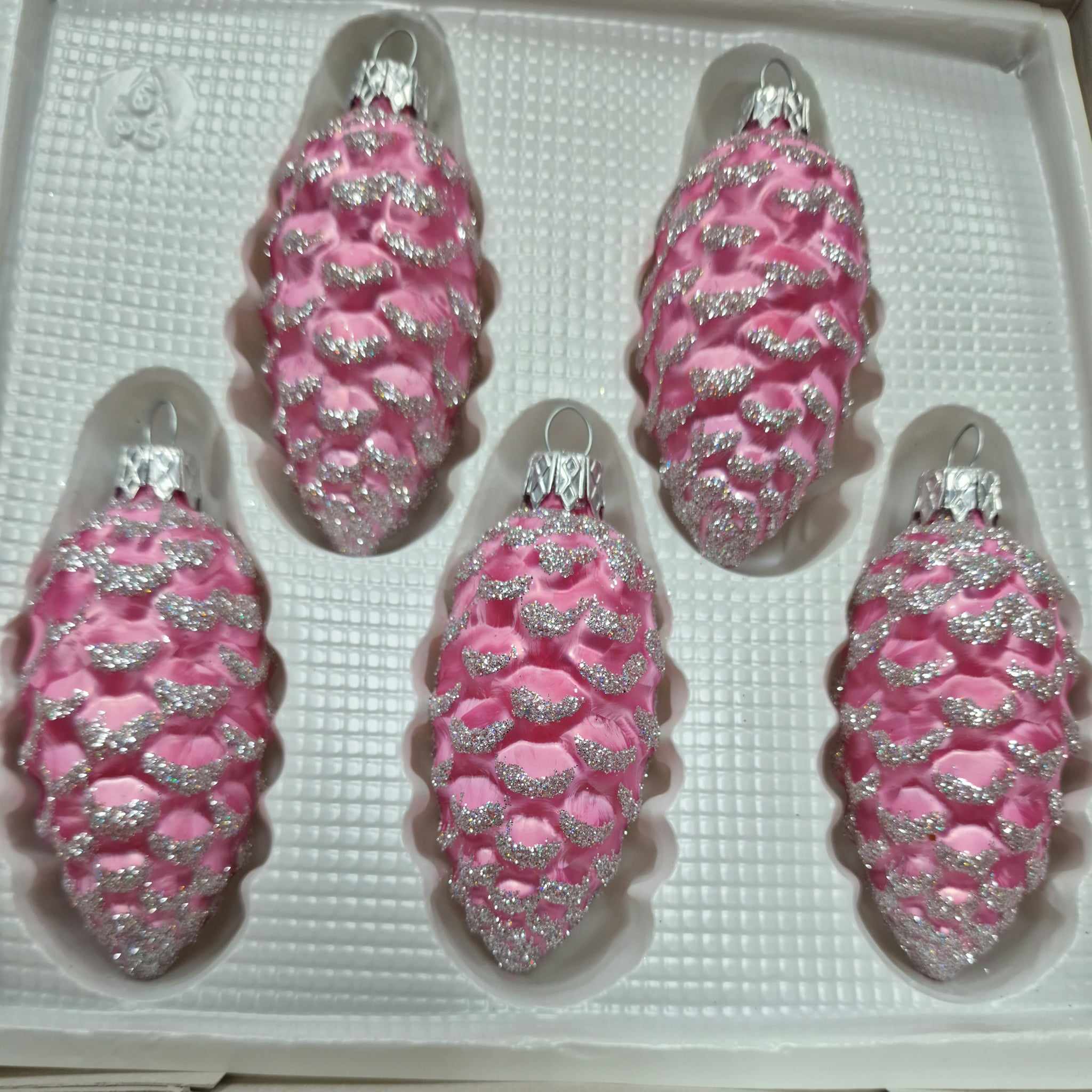 BOMBKI SZKLANE SZYSZKI DŁ. OK 8CM; PAKOWANE PO 5 SZT