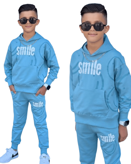 - BLUZA WKŁADANA PRZEZ GŁOWĘ Z KAPTUREM TYP KANGURKA Z KIESZENIĄ Z PRZODU; Z PRINTEM SMILE I NIE TYLKO; ŚCIĄGACZE NA DOLE BLUZY I RĘKAWACH;