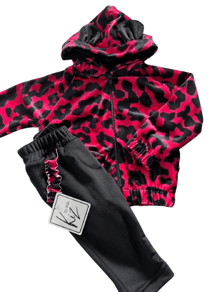 - BLUZA RÓŻOWO-CZARNA PANTERKA Z KAPTURKIEM; ŚCIĄGACZ NA RĘAKWACH I DOLE PRODUKTU; KAPTUR Z USZKAMI