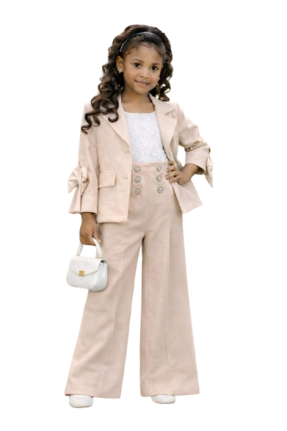 Ekskluzywny Komplet : Krótka Marynarka z Kokardami i Spodnie Wide Leg