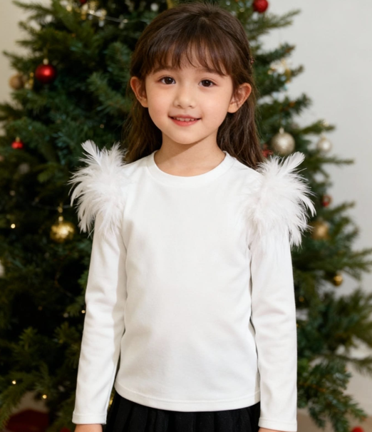 Elegancka Biała Bluzka z Piórami na Ramionach dla Dziewczynki