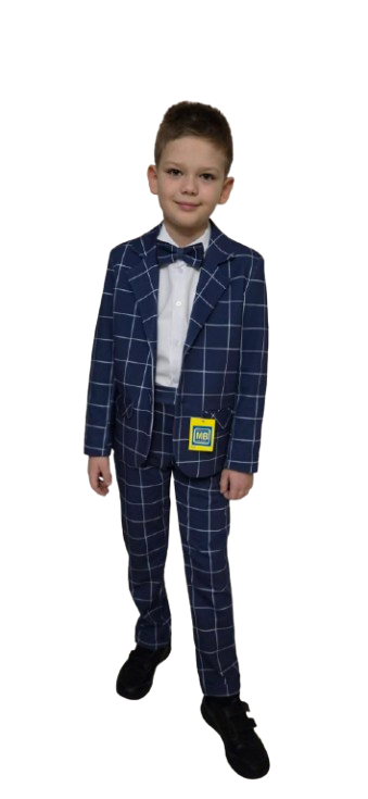 ELEGANKI GARNITUR CHŁOPIĘCY W MODNĄ KRATĘ – GRANATOWY