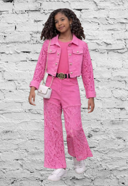 HIT SEZONU! Komplet Dziewczęcy Krótka Katana + Spodnie Wide Leg z Koronką