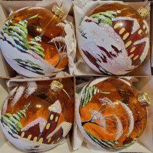 Absolutnie wyjątkowa szklana bombka stworzona przez polskich artystów z Komozja Family. Kolekcja oparta jest na unikalnych formach, szlachetne zdobienia w kunsztowny, wiktoriańskim stylu. Wykonana z ogromną precyzją oraz dbałością o najmniejsze detale np. strój, Mikołaj. Każdy z elementów został ręcznie pomalowany przez artystów.