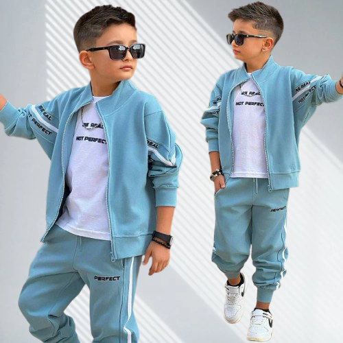 **Komplet Dresowy Chłopięcy 3w1 Błękitny „REAL NOT PERFECT”**