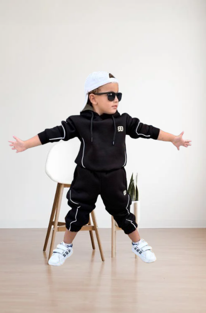 • Design: Bluza z kapturem, z nadrukowanym logo boy boy” na piersi. Spodnie o dopasowanym kroju, również z logo „boy boy” na nogawce.