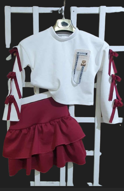Napisz pierwszą opinię o „Komplet Dziecięcy: Bluzka z Kokardami + Spódnico-spodenki z Falbanami”