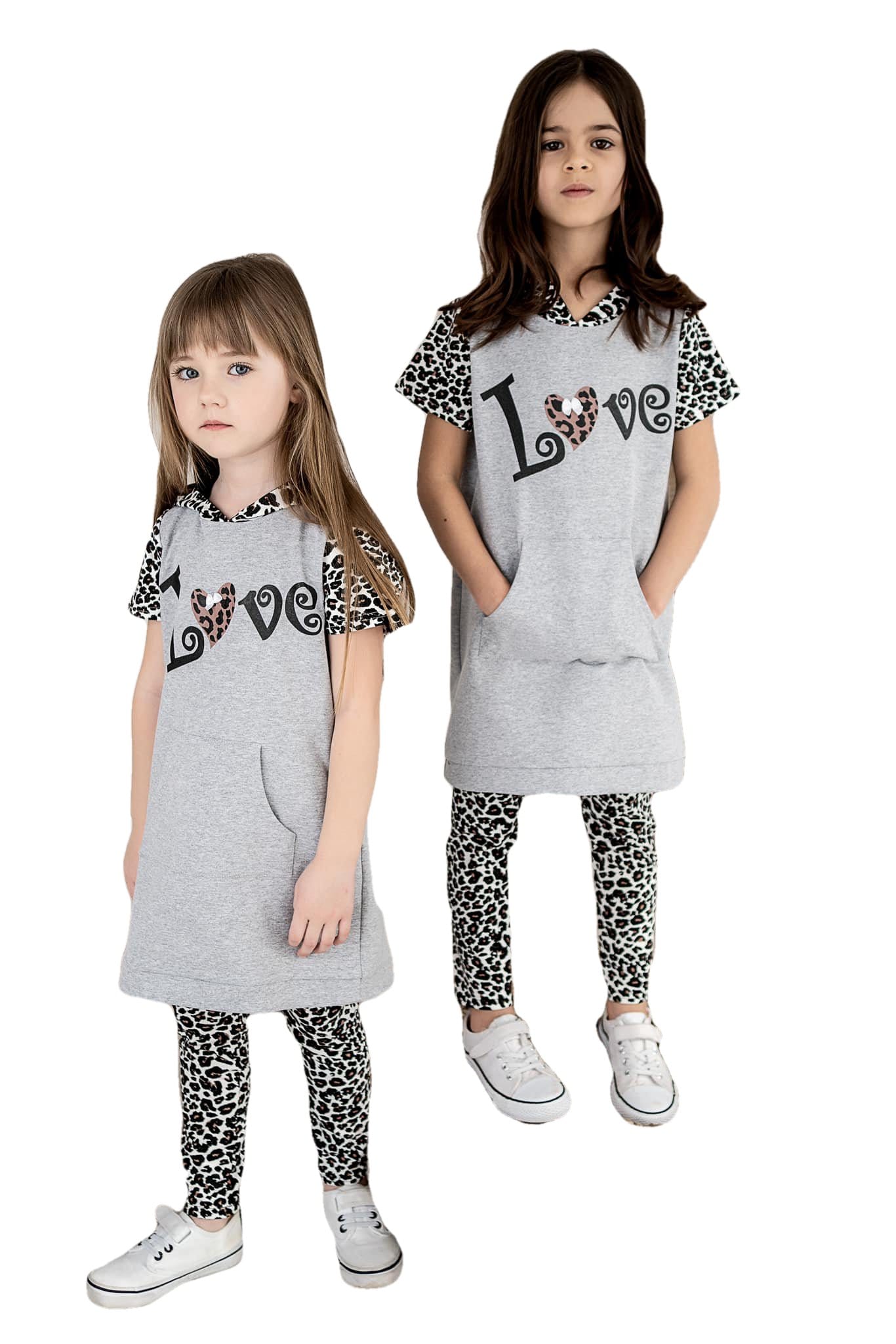•Bawełniana Tunika w najmodniejszy print Pantery w połączeniu z szarością, kieszonka kangurka na przodzie oraz napis love; z kapturkiem logowanym