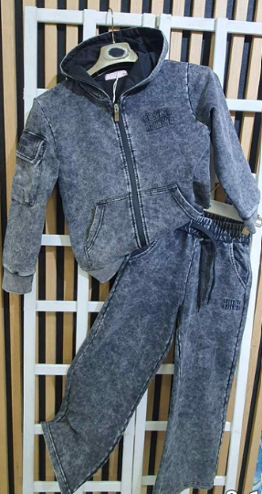 Bluza i spodnie mają ozdobne naszyte aplikacje, na bluzie na rękawie kieszonka.