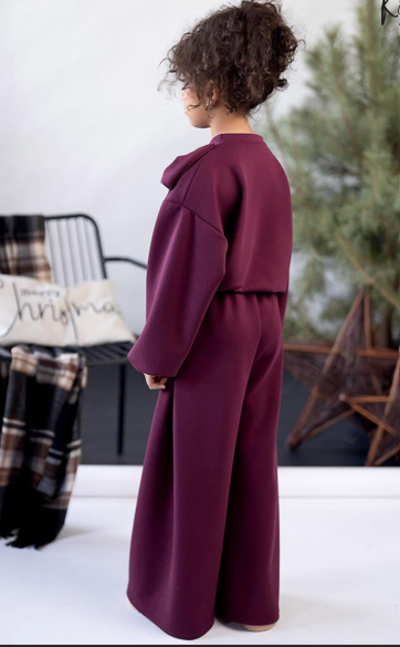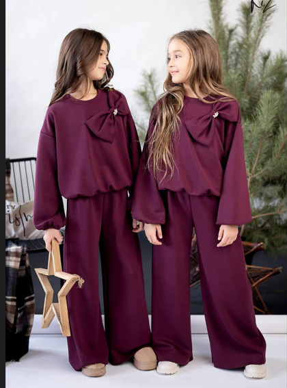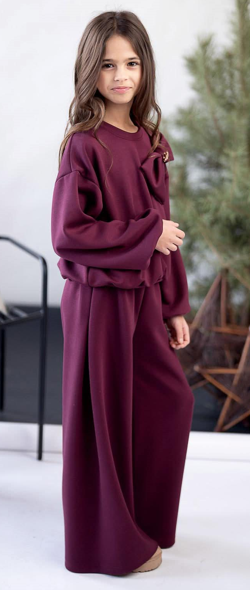 HIT! SUPER MODNY KOMPLET DRESOWY KiZ by Kids – Bluza OVERSIZE + Spodnie SZWEDY DZWONY – BORDO
