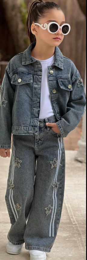 Odkryj najnowszy trend w modzie dziecięcej! Ten unikalny zestaw łączy wygodę dżinsu z supermodnym stylem streetwear i detalami, które przyciągają wzrok. Idealny dla małej fashionistki, która chce wyróżnić się z tłumu.
