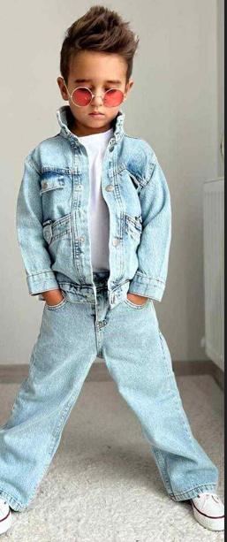 Stylowy Komplet Jeansowy Chłopięcy Oversize – Jasny Błękit