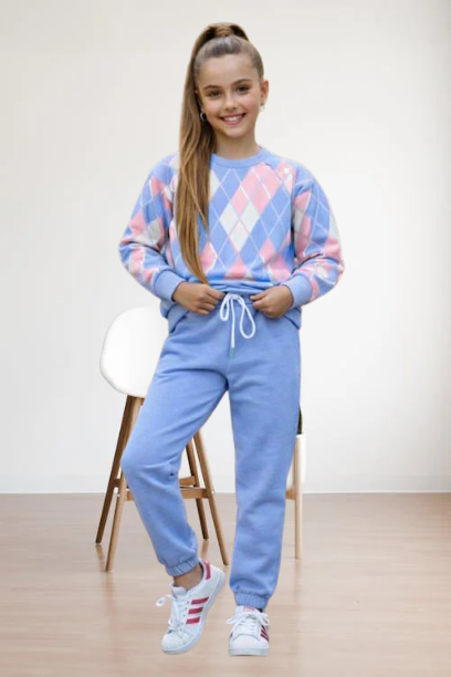 Modny Komplet Dziewczęcy: Bluza Argyle & Joggersy
