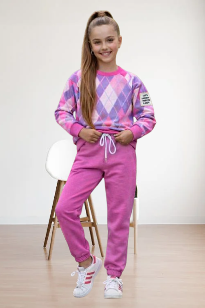 Modny Komplet Dziewczęcy: Bluza Argyle & Joggersy