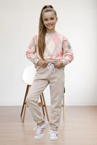 Modny Komplet Dziewczęcy: Bluza Argyle & Joggersy