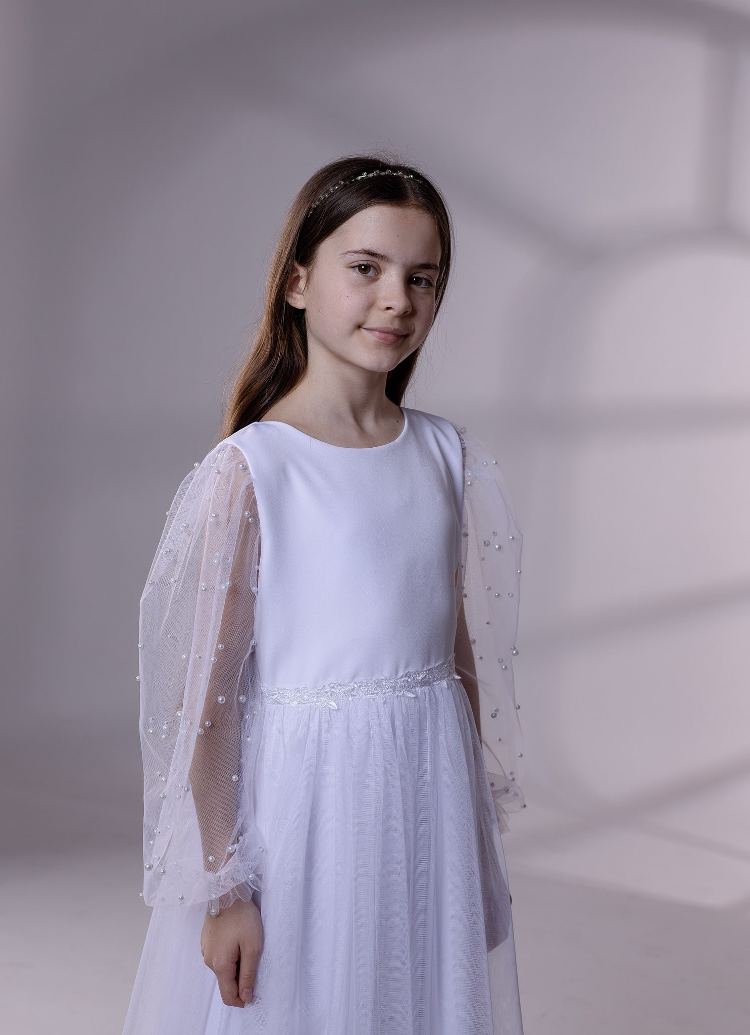 • DŁUGI RĘKAW Z TIULU Z NABITYMI PEREŁKAMI; GUMECZKA PRZY NADGARSTKU