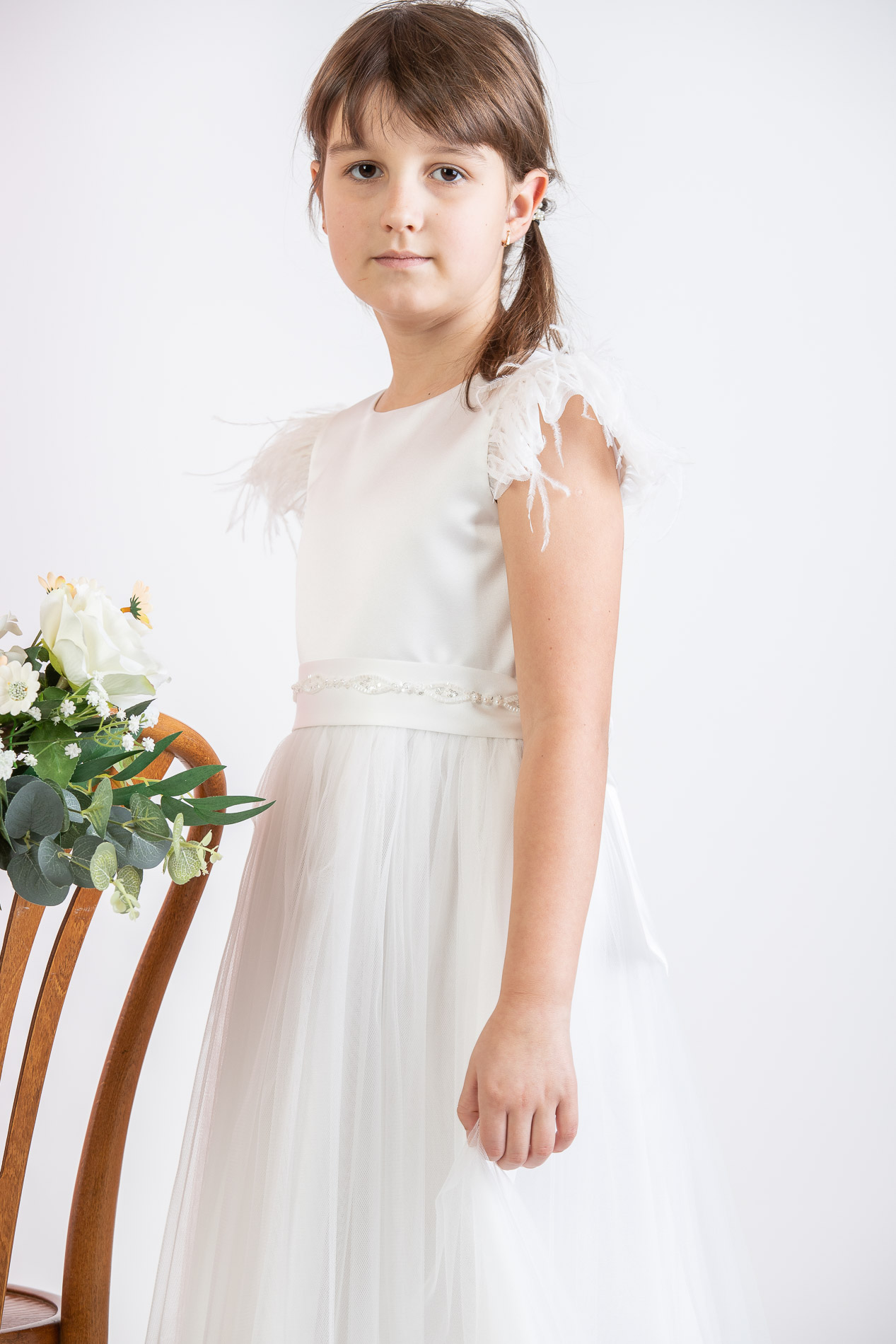 Sukienka z piórkami na komunię w kolorze ŚMIETANKOWYM 🥰😍👑