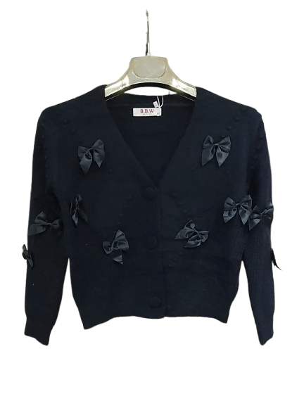 SWETER SWETEREK DLA DZIEWCZYNKI ROZPINANY W KOKARDKI CZARNY