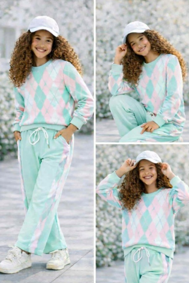 Wzór: Modny, geometryczny wzór argyle w odcieniach różu, fioletu i niebeski.