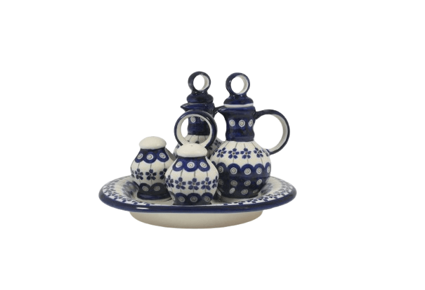 SOLNICZKA, PIEPRZNICZKA, 2 POJEMNIKI NA OLIWY, VINEGRET LUB MAGGI